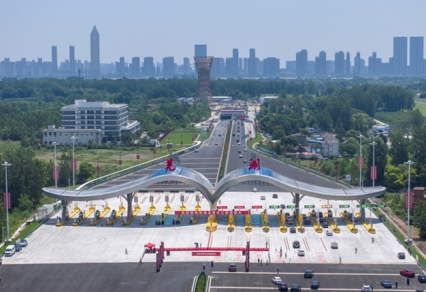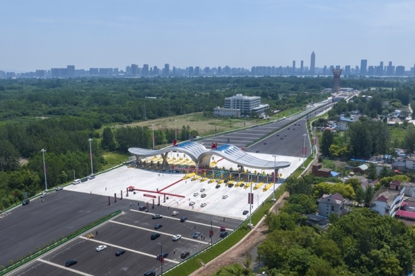 7月1日,车辆通过芜湖龙湾长江隧道收费站(无人机照片)。