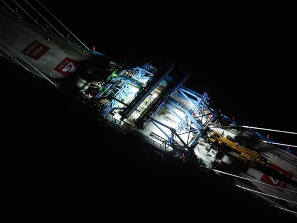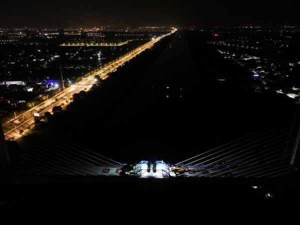 7月1日凌晨,由中国铁建大桥局承建的沪渝蓉高铁通泰扬特大桥跨引江河斜拉桥顺利合龙。