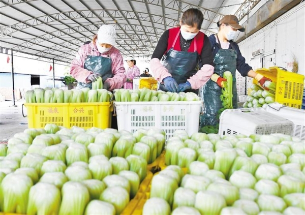 在甘州区上秦镇万亩蔬菜种植基地,菜农采收蔬菜。(通讯员王将)