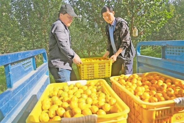 敦煌市月牙泉镇合水村村民采摘分拣李广杏并发往全国各地。(通讯员张晓亮)